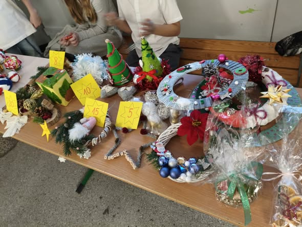 Wśród przygotowanych ozdób znalazły się kolorowe łańcuchy, świąteczne kartki, własnoręcznie robione bombki, kolorowe choinki oraz wiele ciekawych ozdób na choinki.